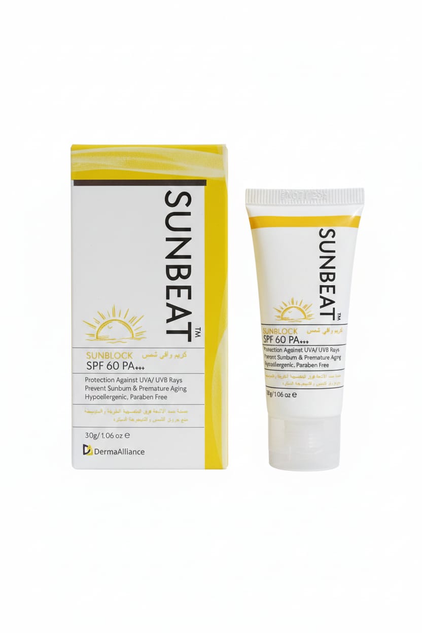 Sunbeat Sunblock SPF 60 is an advanced sun protection formula against the harmful effects of UVA and UVB sun rays. This non-greasy and paraben-free formula forms an effective barrier that protects skin from sunburns, age spots, and hyperpigmentation. It protects the skin all day and wears well under makeup with no greasy feeling on your skin.